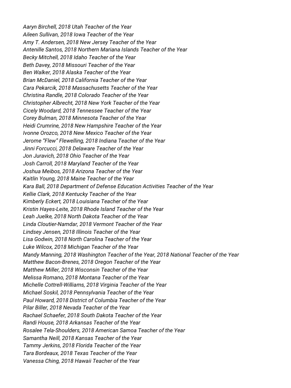 As educators, and also as community members, parents, and learners, the undersigned 2018 Teachers of the Year, rise in solidarity with Black Lives Matter against racism and hate.