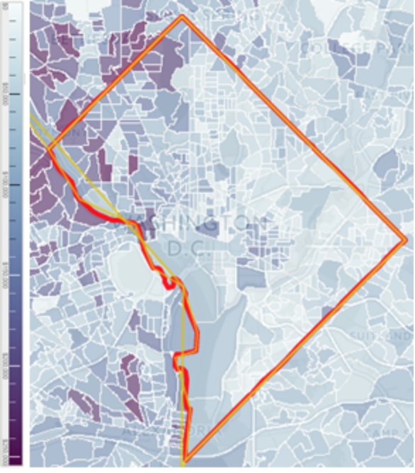 Yet, even when I consider this policy change as a solution in my current home of Washington, D.C., I’m lost as to whether this would work. The map above illustrates the current level of income disparity across the District, with darker colors representing higher incomes. The distribution of income is too large to use as attendance boundary criteria, with a clear divide between the upper northwestern region and the rest of the District. D.C. Public Schools (DCPS) tries to remedy this by designating most of their schools as open enrollment, but priority is still given to neighborhood students. Although DCPS should be commended for its strong commitment to equity, there is still much work to be done, especially considering its most recent PARCC scores and the disparities between racial groups that still exist.