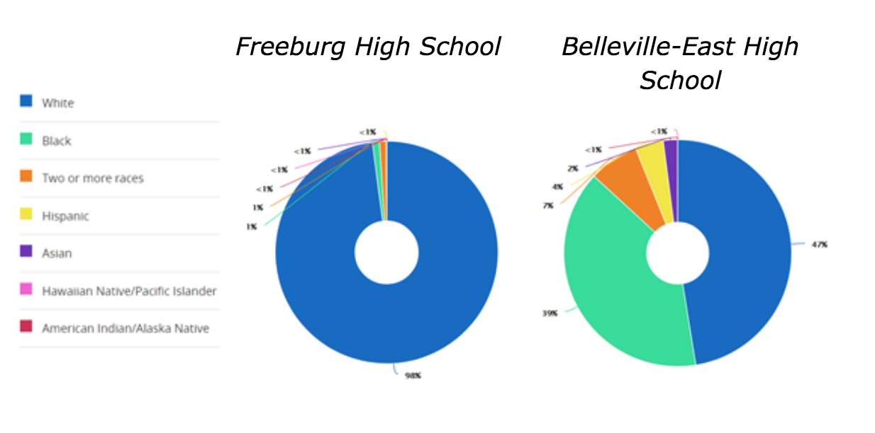 The schools were performing at significantly different levels, yet Freeburg High was known as the “good” school. With my interest piqued by the difference in standardized test scores I decided to dig a bit deeper and examined the demographic information.