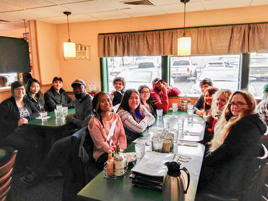 We then headed to Pullman and visited Washington State University and Cougar Country Drive-In. One of our alumni will begin student-teaching in math at a nearby high school this spring (YASSSSSS!). Another former student is headed to Jacksonville, Florida to join Teach For America, teaching secondary English (YASSSSSS! x2). Another student is the president of the Black Student Union and he shared his story of building solidarity with Hispanic/Latin@ students the day after the election—when supporters of the President-Elect erected their cardboard and plywood “Trump Wall” on campus. They talked about navigating campus administration and their frustration with tone deaf school administrators. They held back tears and I was inspired by their poise.