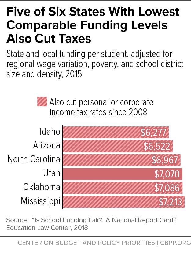 North Carolina teachers plan to hold a “ March for Students and Rally for Respect” on May 16—the first day of the new legislative session—to protest low pay and inadequate school funding. As in Oklahoma and Arizona, excessive tax cuts have made it harder for North Carolina policymakers to devote adequate resources to K-12 public education. North Carolina enacted sweeping tax cuts in 2013 that already have cost billions of dollars, with more tax cuts scheduled for next year. The changes to date include: