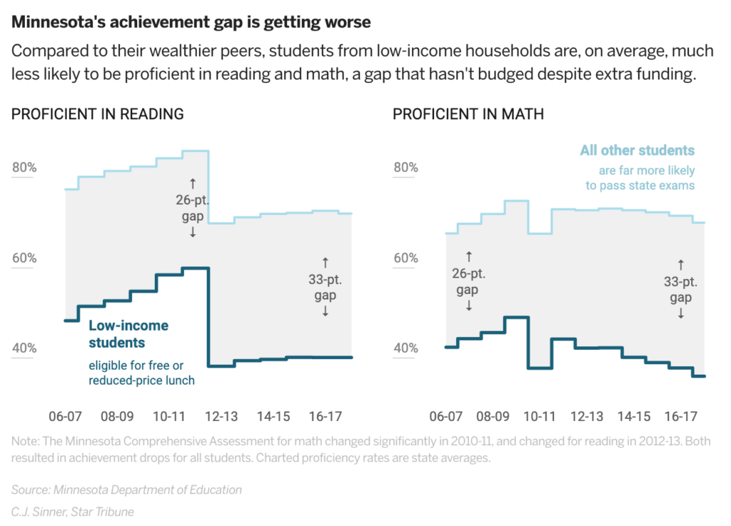 This past June the StarTribune published a story indicating the state’s funding to help districts improve student achievement doubled to $600 million annually, but the gap not only didn’t improve, it widened significantly.