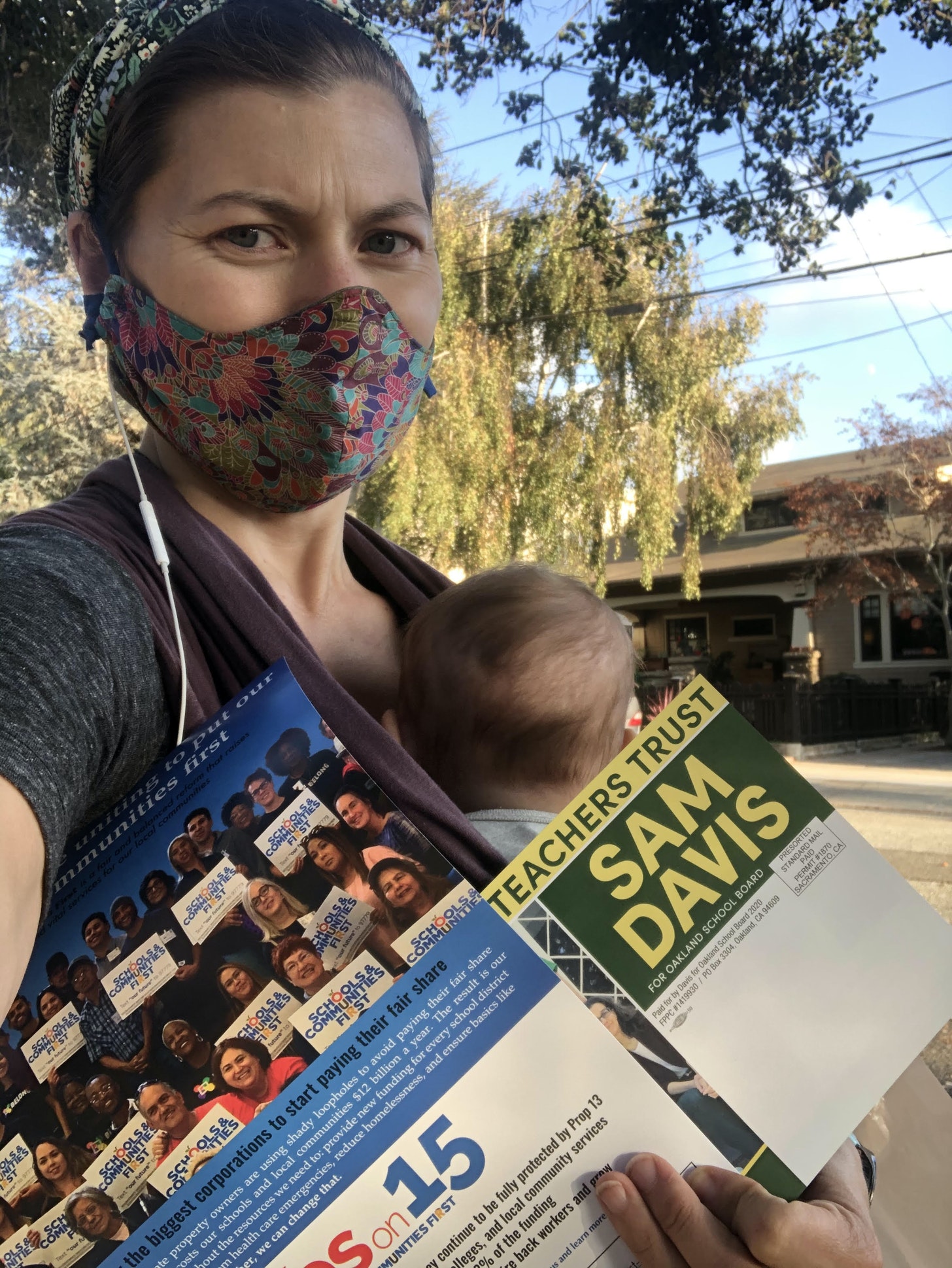 One of my favorite humans who “does politics” in a daily, radical, humble way is my friend and collaborator Rachel Latta. If you sit and have a cup of coffee with her, you will be convinced she has a Ph.D. in education, at the very least, and maybe also an MSW or a master’s in critical race theory. In fact, she is professionally trained as a midwife. She spends her workdays catching babies, and her non-work days raising three and making the whole city of Oakland better for everyone’s babies through her work at Equity Allies for OUSD. (She is also my co-lead on the Integrated Schools chapter here in Oakland.)