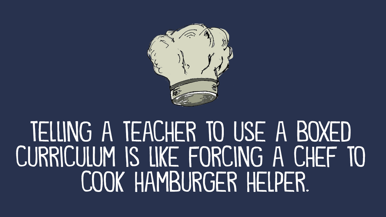 Lately, I’ve seen a meme that keeps popping up on social media: “Telling a teacher to use a boxed curriculum is like forcing a chef to cook hamburger helper.”