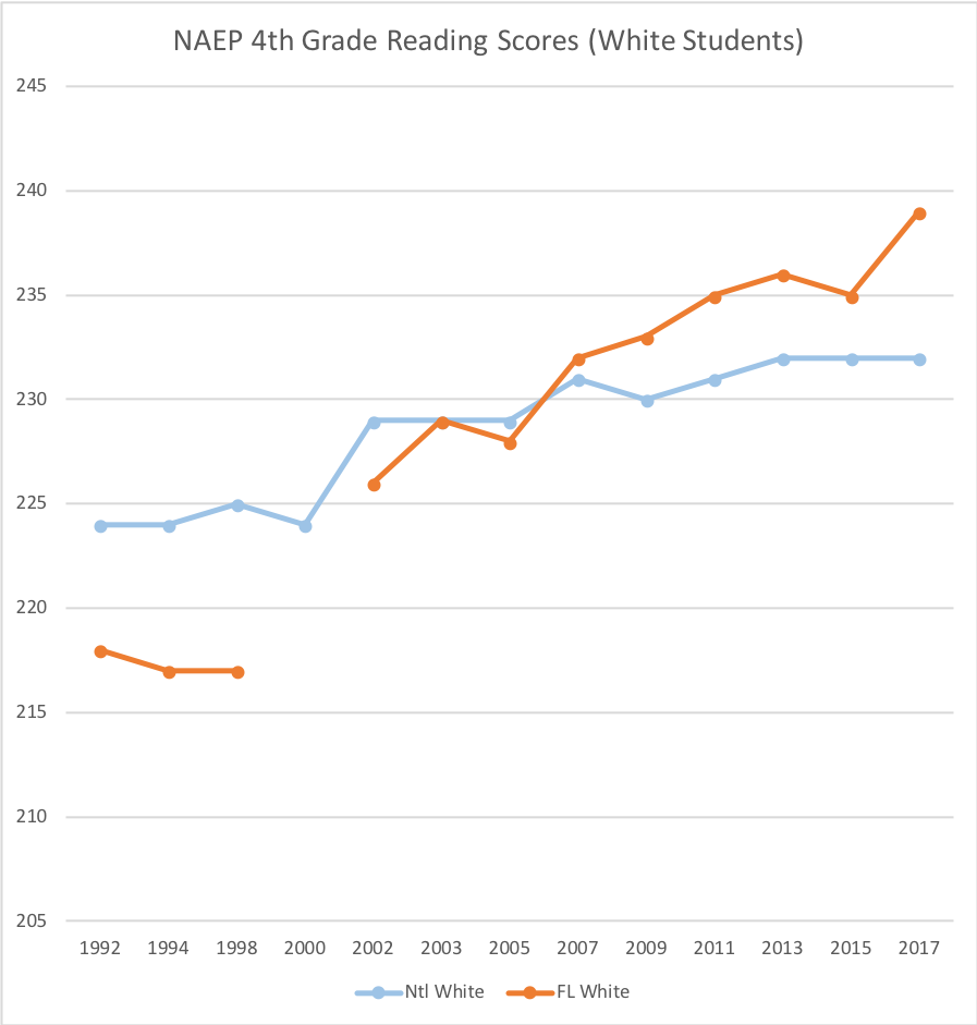 White students in Florida are doing better than their national peers, too, and in 2017, especially so.